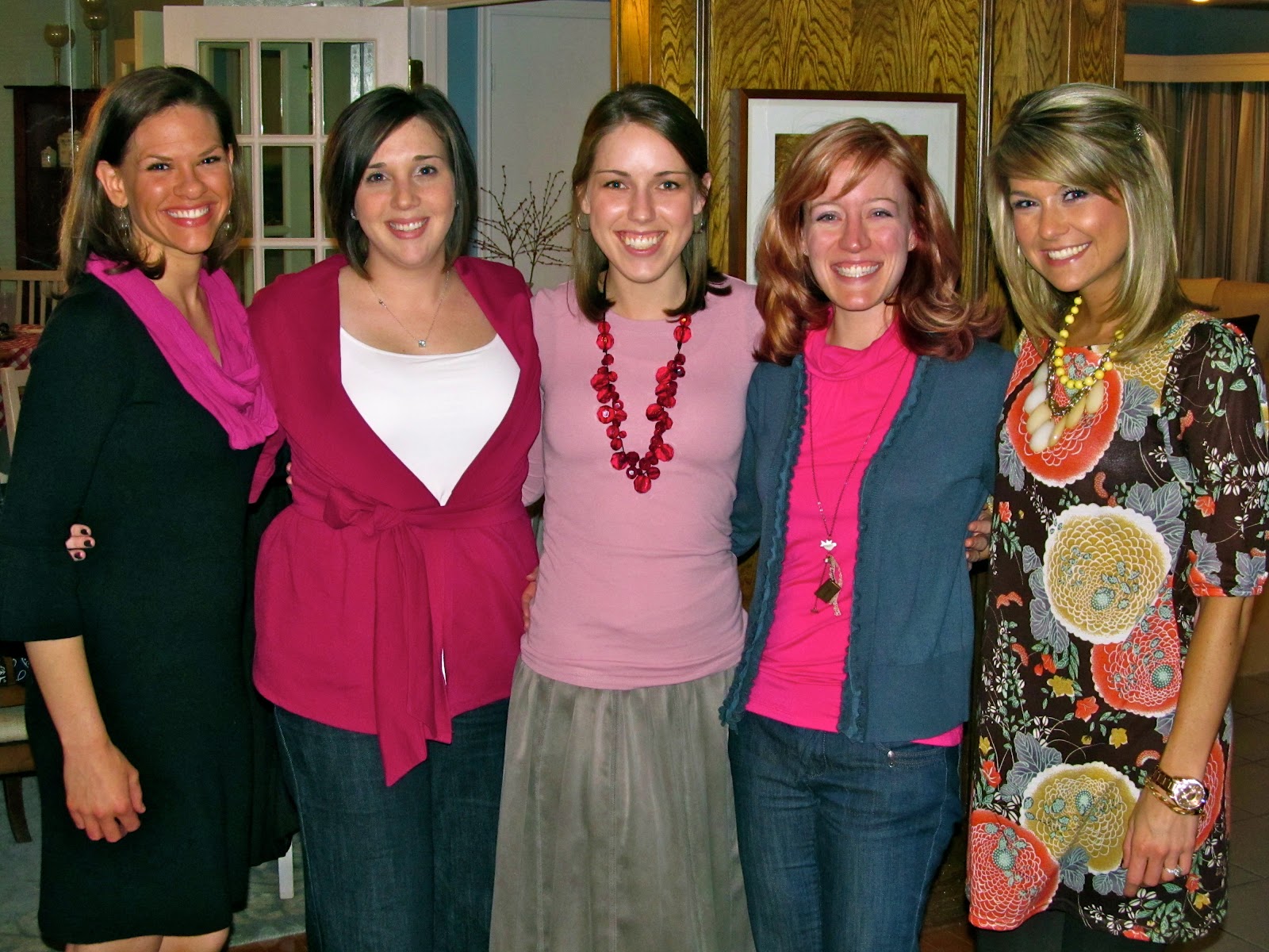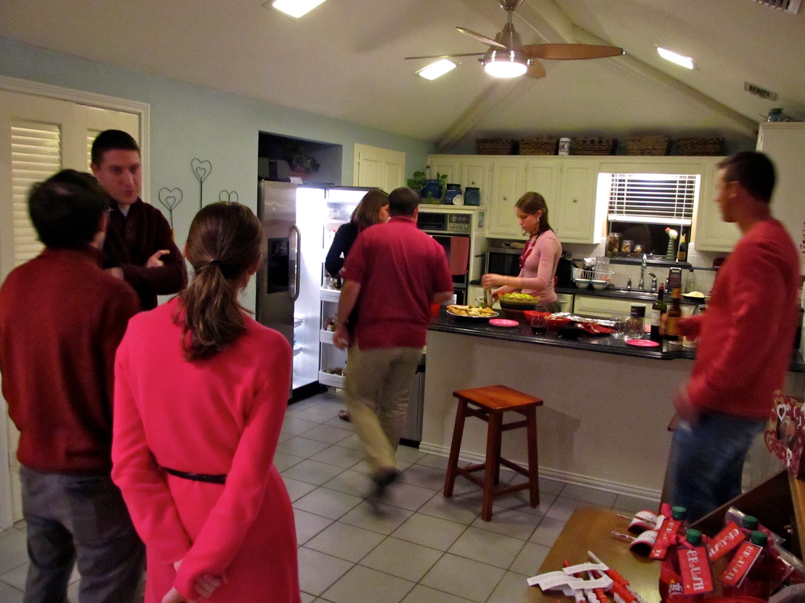 Dinner was delicious, and of course the hosts did the most amazing job.  You can see we were all in festive attire- most all shades of pink/red were represented.