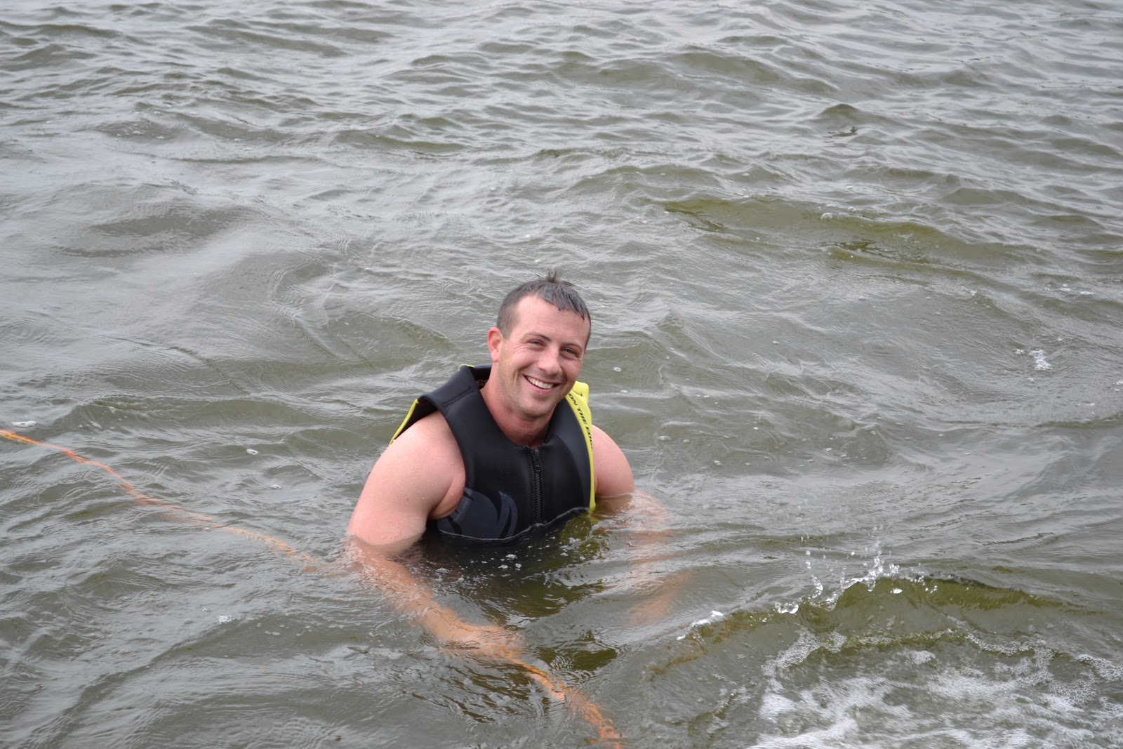 After a rolling summersault across the lake, Jordan was done- back to dry land for him.
