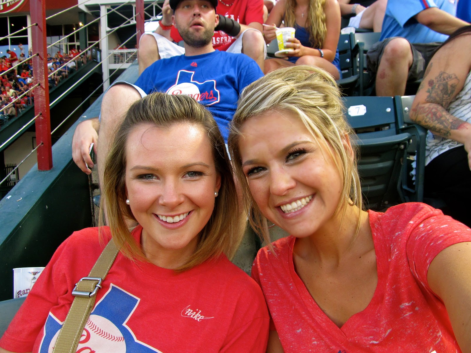 The Rangers pulled out a big win 14-1. We stayed and watched a bit of the Fireworks show at the end- even with our hubbies complaining to go.. Ashley and I were determined.
