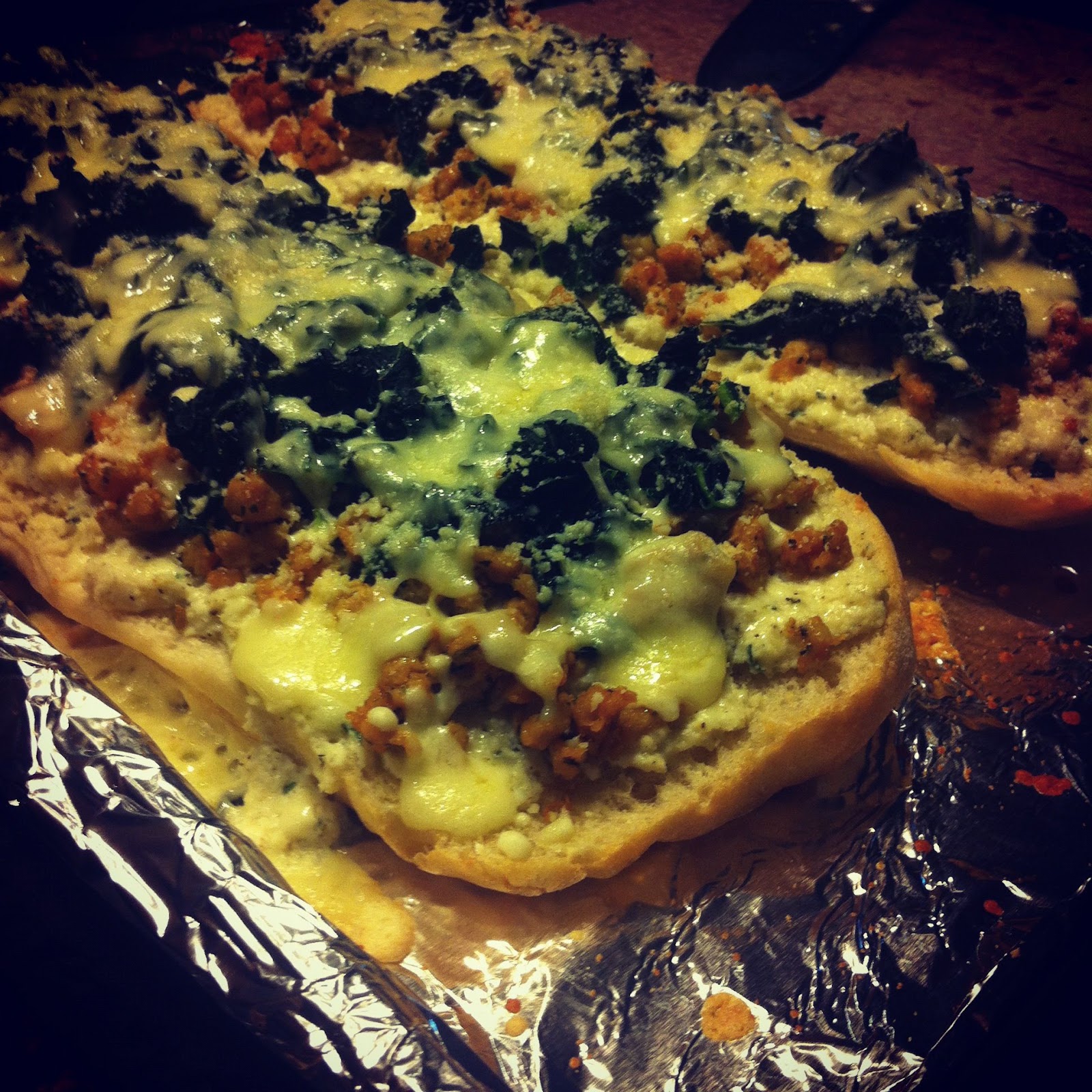 4.) I made this yummy dinner-3-Cheese French Bread Pizza with Chicken Sausage and Kale. Last night, my sweet and me enjoyed it for a living room pizza picnic. Recipe up on Chocolate Broccoli next week!