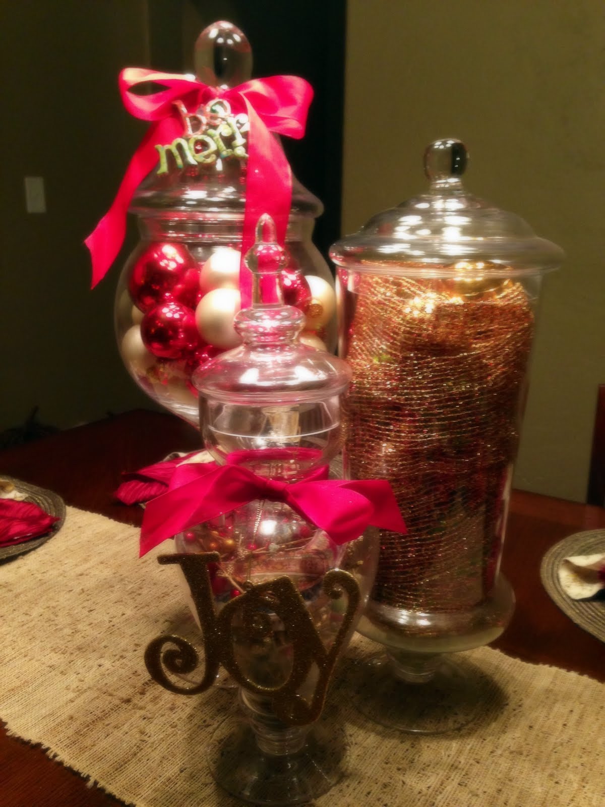 One thing I could do while sitting down? Fill my glass canisters with Christmas Cheer