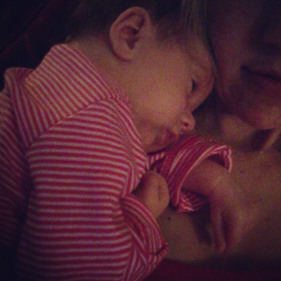Jolie would rather snuggle than be social like her sister. I was double fisting the two girls while attempting to snap photos of Parker laughing. I have become quite multi-talented in my new new role as momma.