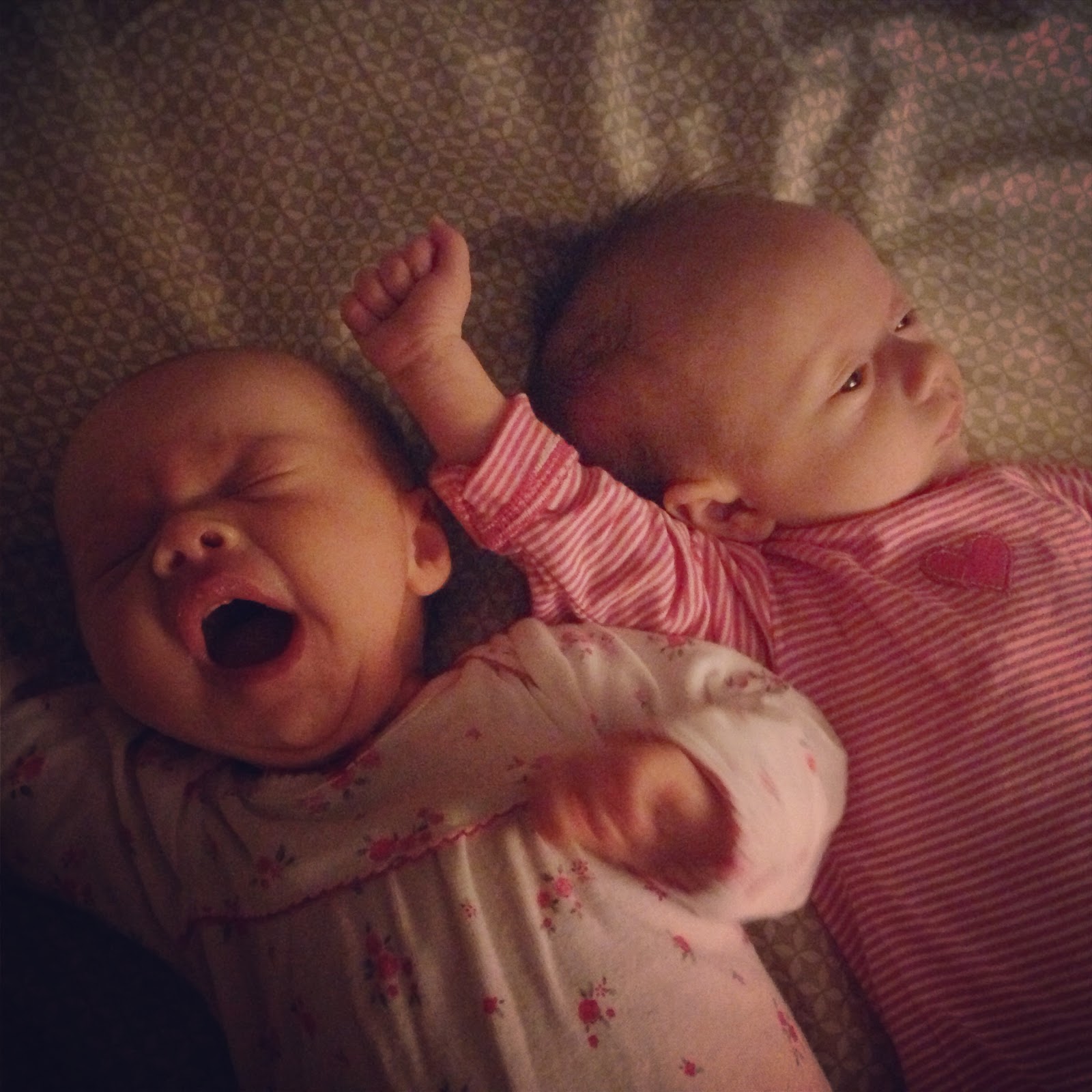 Oh our babies have the life, I wish someone would strap me into a Moby and snuggle me all day! Your girls look more precious every day! I can't wait for Reese's first real smile..