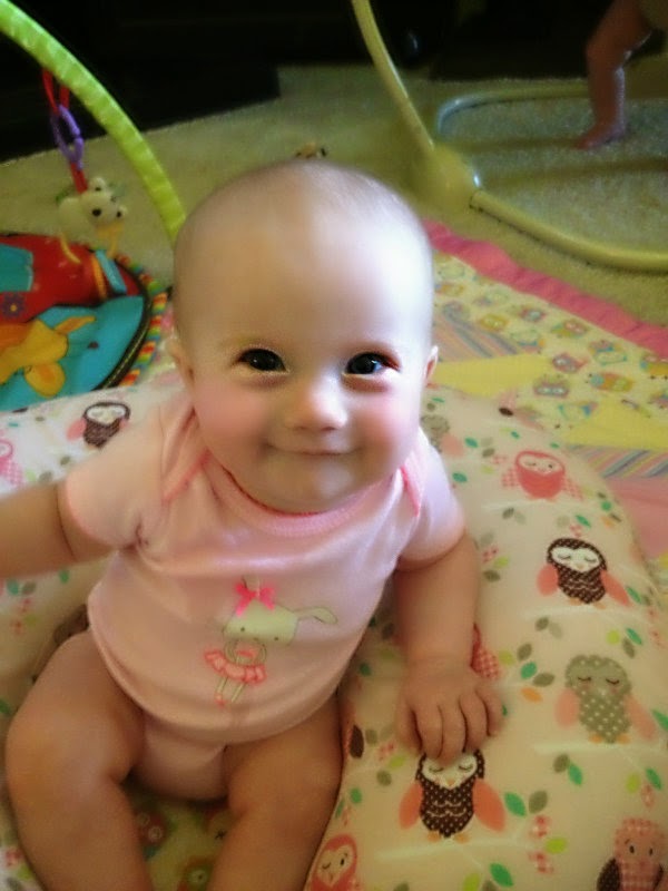 You are such a ham! You are so sweet and have such a gentle demeanor. I remember when I first saw you, you came shooting out of mom with the chord wrapped around your neck twice. I was so thankful mom had planned to do a c-section. I remember when you were first laying on the table and your were screaming your head off like you still do when you are tired and mad, you were so beautiful. I remember holding you for the first time looking into your blinking eyes, immediately thinking you look just like your momma. You already had a calm and gentle look about you once I laid you on your momma. You have always been such a strong girl, always outweighing your older but smaller sister by at least a pound. You are able to sit up so straight on your own. You were the first to roll over to your back, but haven’t really cared about rolling over to your stomach. You will roll half way and decide its not really worth it. (I have no doubt you will master it when you are ready.) While your sister is always so busy, you are always wanting to be near us. You love to sit in our (mom’s mostly) laps and just be loved on. You have the sweetest desire to have us cover your face with our hand while you fall asleep. Wen we can’t stand anymore you graciously take your monkey wubbanub instead and twirl the tag in your fingers while you fall asleep. You always wake up before your sister and are always so happy to see us at your crib. you start to grin and kick your legs like crazy. I love watching you cuddle with your mom during church and watching you fall asleep face first in her chest while we sing praise songs. You are so special to me and you melt my heart every time you smile at me. Love you, baby girl.