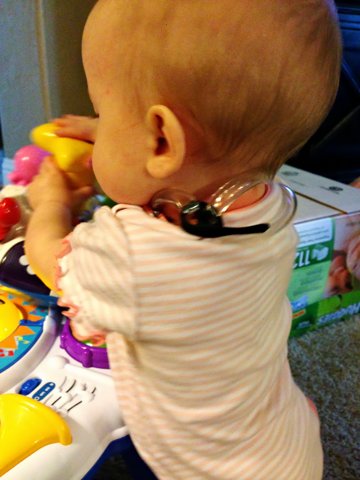 Jolie Polie is such a strong one…her progress is amazing and you two as parents did an awesome job jumping on the therapy right away. And yeah…what the heck was that toy she was playing with?! haha 😉
