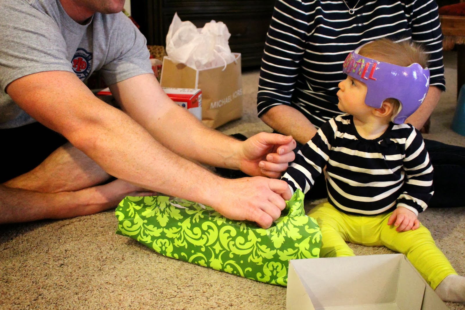 I love the picture of the girls in the wagon, with Parker leaning back in her seat, totally comfortable 🙂 I also love the one of Jolie sitting on the present AS she's unwrapping it! So precious!