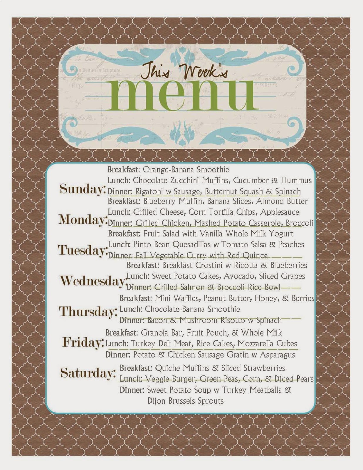 I amped it up a little more with the Fall Fare – we are in the first week of October, ya’ll!  Can you believe it?  Warm meals and root veggies are the way to my heart during this time of year.  We have a jammed packed week, so in turn simple meals with a handful of ingredients were my focus for this meal plan. If it didn’t fall into those guidelines, I made sure I was able to make it ahead of time so that it was good to pop in the oven when the time was right.