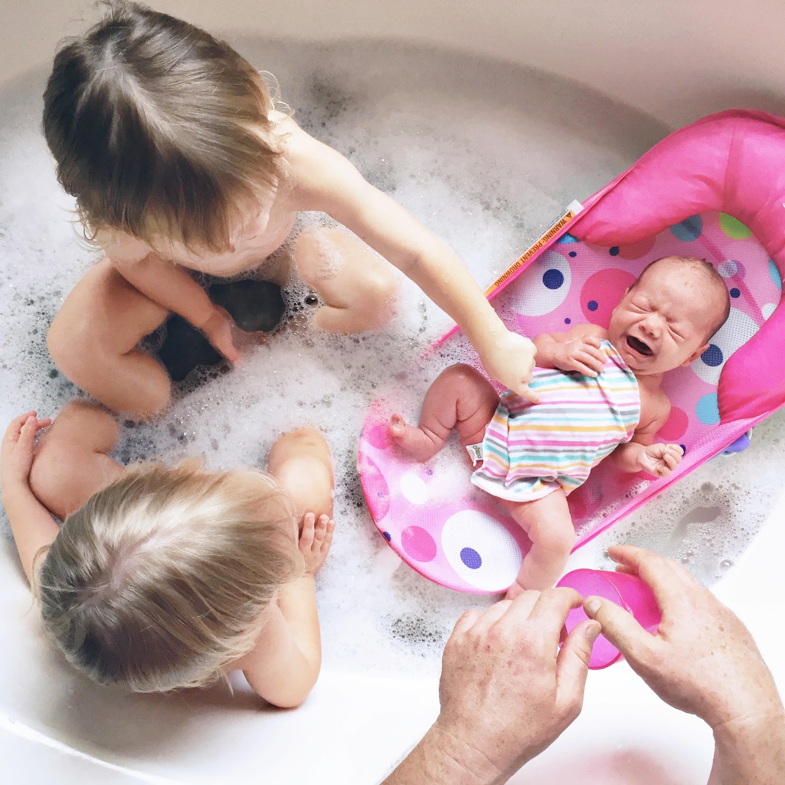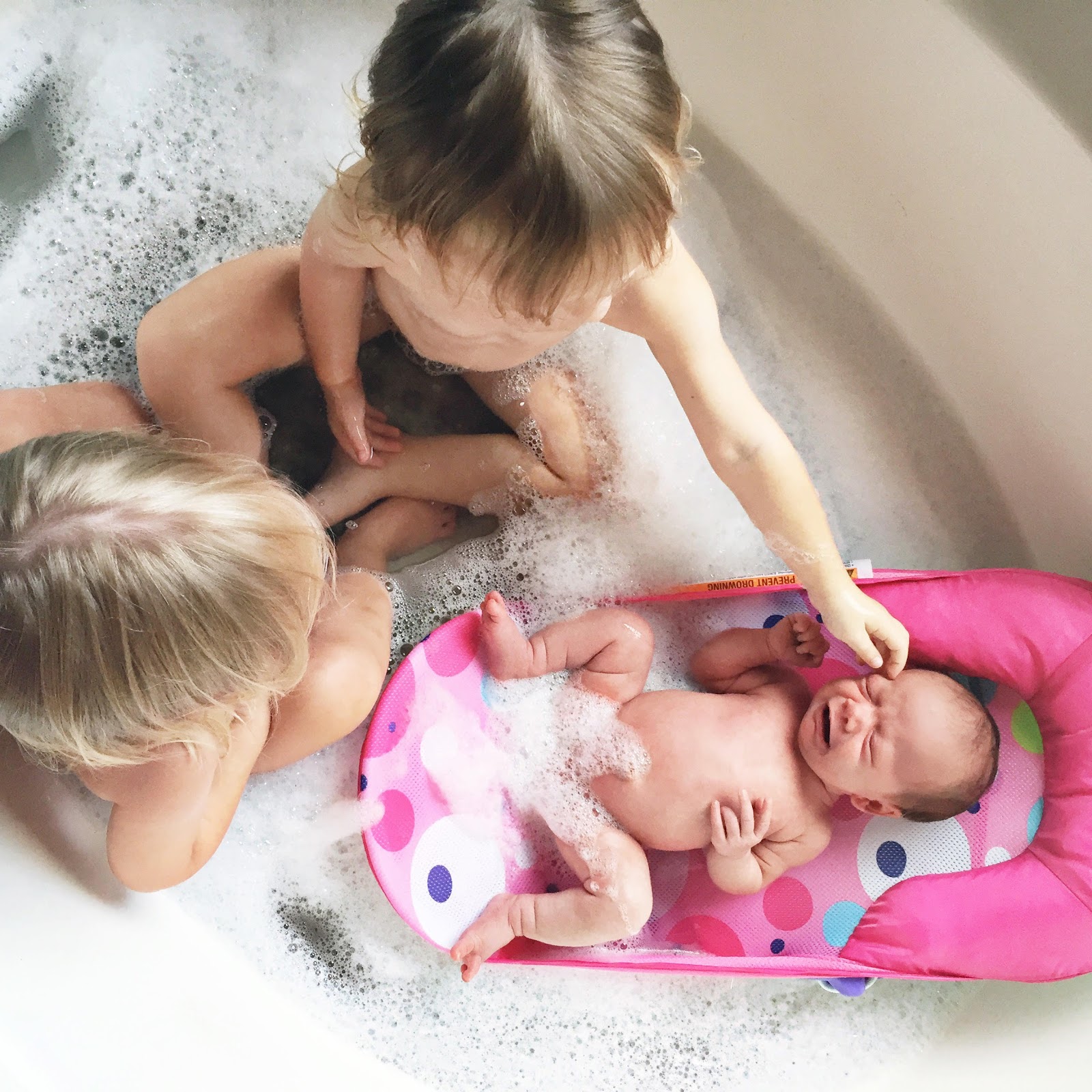 Not only as a new mama to miss Baker, but to be able to include Parker and Jolie into the scenario too! We’ve made a real effort to include the girls in everything they can be (and want to be for that matter..). Parker and Jolie get so excited to help, play, feed, rock, and love on ‘baby Baker’ – so it was important that we included them in her first bathtime experience as well.