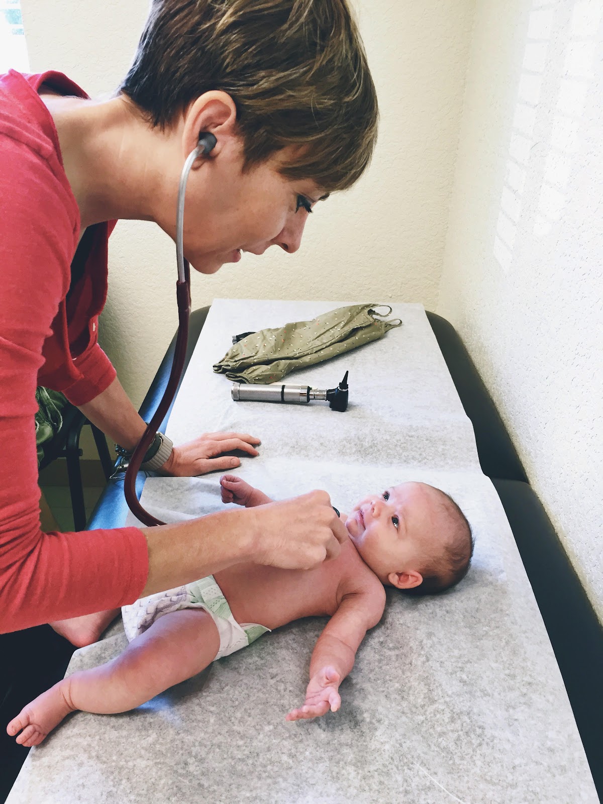 Dr. B gave her the once over and everything looked perfect! I always walk into these check up appointments with a twinge of anxiety in the pit of my stomach- what if something is wrong and I, her mother, doesn’t even know it?! But, our sweet girl looked good and healthy – no concerns! She was really pleased with how well she’s growing and how consistent her growth charts looked.