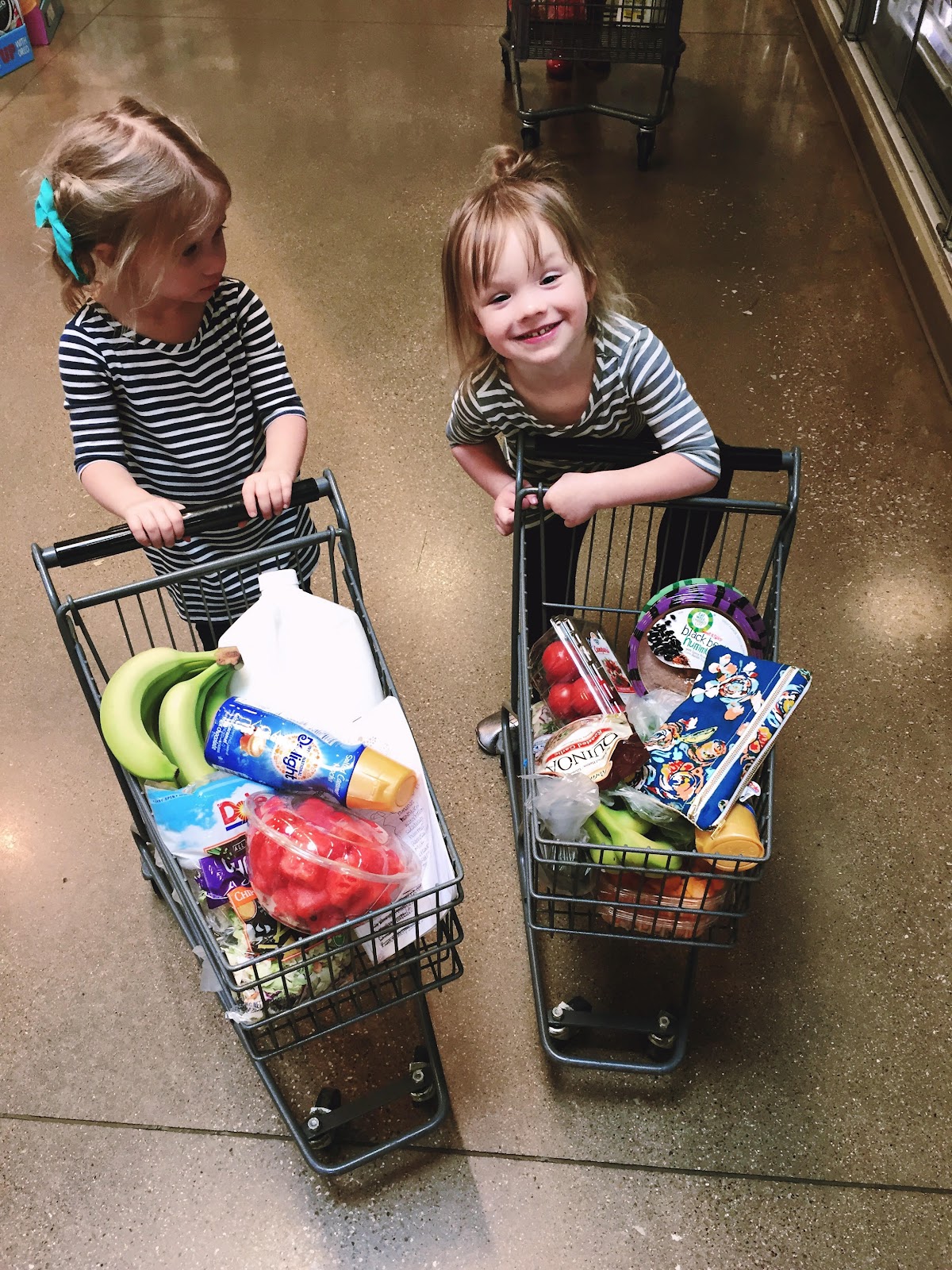 Brody has one of those Duh outfits as well as I have a duh shirt. Love that company. I also love how Baker has her hand on her big sisters back in the Target cart. Such a sweet picture.