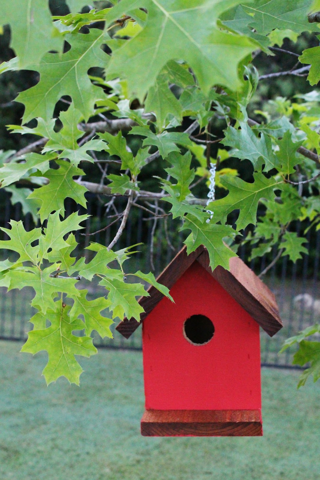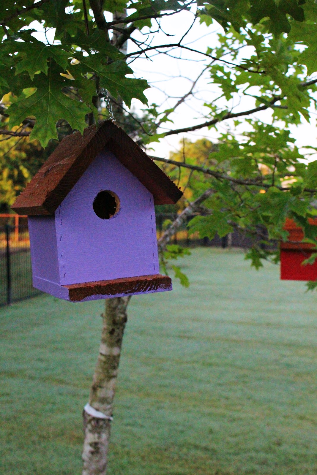 last weekend while Jolie and I took Baker to make a grocery run, Parker went with her dad to get the supplies for these houses. which also means she picked the colors for paint! Jordan made sure to choose a water-based latex paint- safe for the birds and the babes. we just painted the outside of the houses, so the inside is still raw cedar wood. safety again for the birds and their babies!