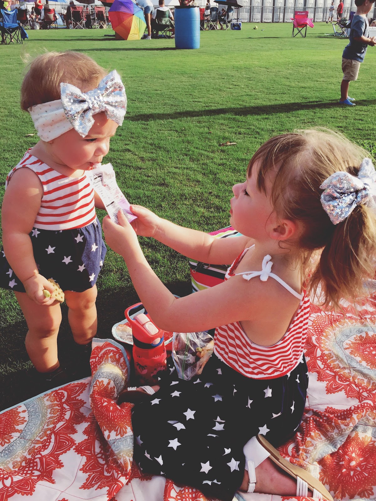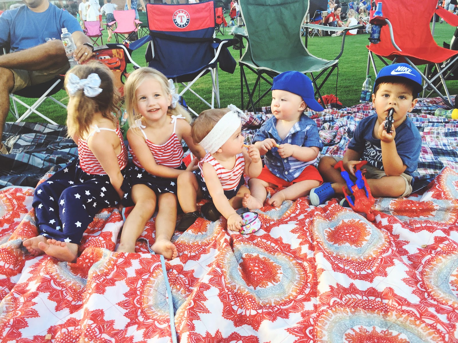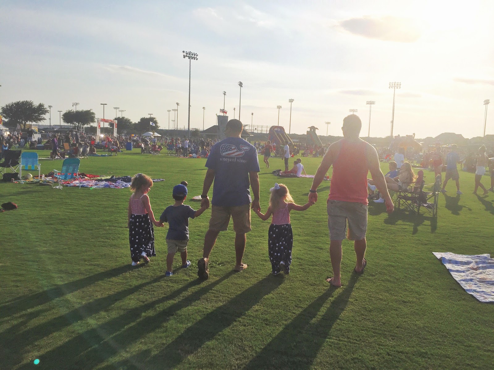 this year we decided to go to the flower mound festival at Bakersfield Park with our supper club crew, minus the Tapella’s. they go out of town every year for the Fourth, so we missed them! we got there about 530pm and set up shop on the back field in the perfect spot for firework viewing.