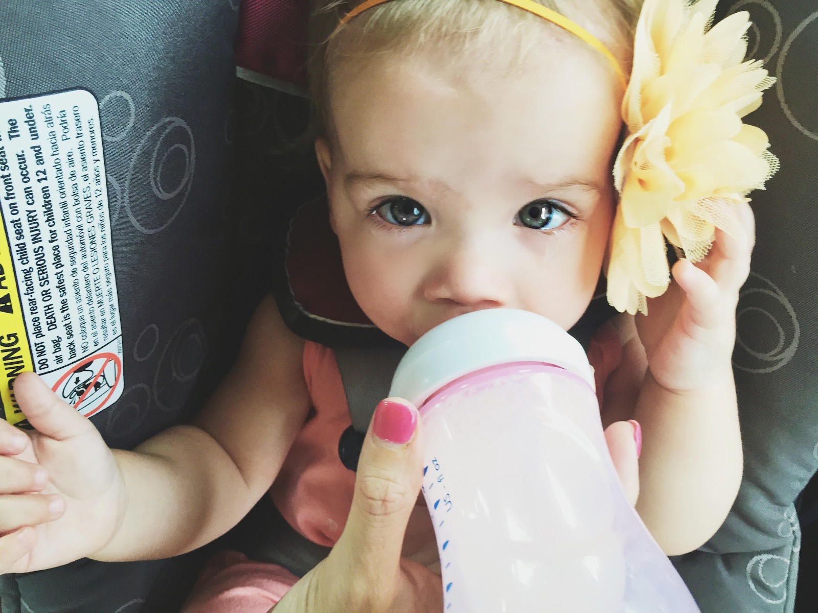 last week I thought for sure Baker was done with bottles. I thought she had self-weaned and I even mentioned it with a picture of B with her ‘last bottle’. well. I was wrong. the next day she refused most food and only wanted her bottle.. and then woke up hungry at all hours that night. so. I bought another (my last?) container of formula and offered it to her again. she is only taking about 3 bottles during the day and I have been sitting her in her highchair to eat three meals. trying to get her acclimated for when we do toss the bottles for good. I have learned that with Baker, she has to be focused to eat- table food or bottle. I cant just plop her down for a bottle in the middle of active playtime. I have to completely remove her from everything and offer it and she will usually take it and suck down the entire eight ounces. same with the table food. if she is tired or distracted she has a really hard time with it. Dr. Butler made a point to tell us it was time to stop formula and ditch the bottles, those are on their way out.