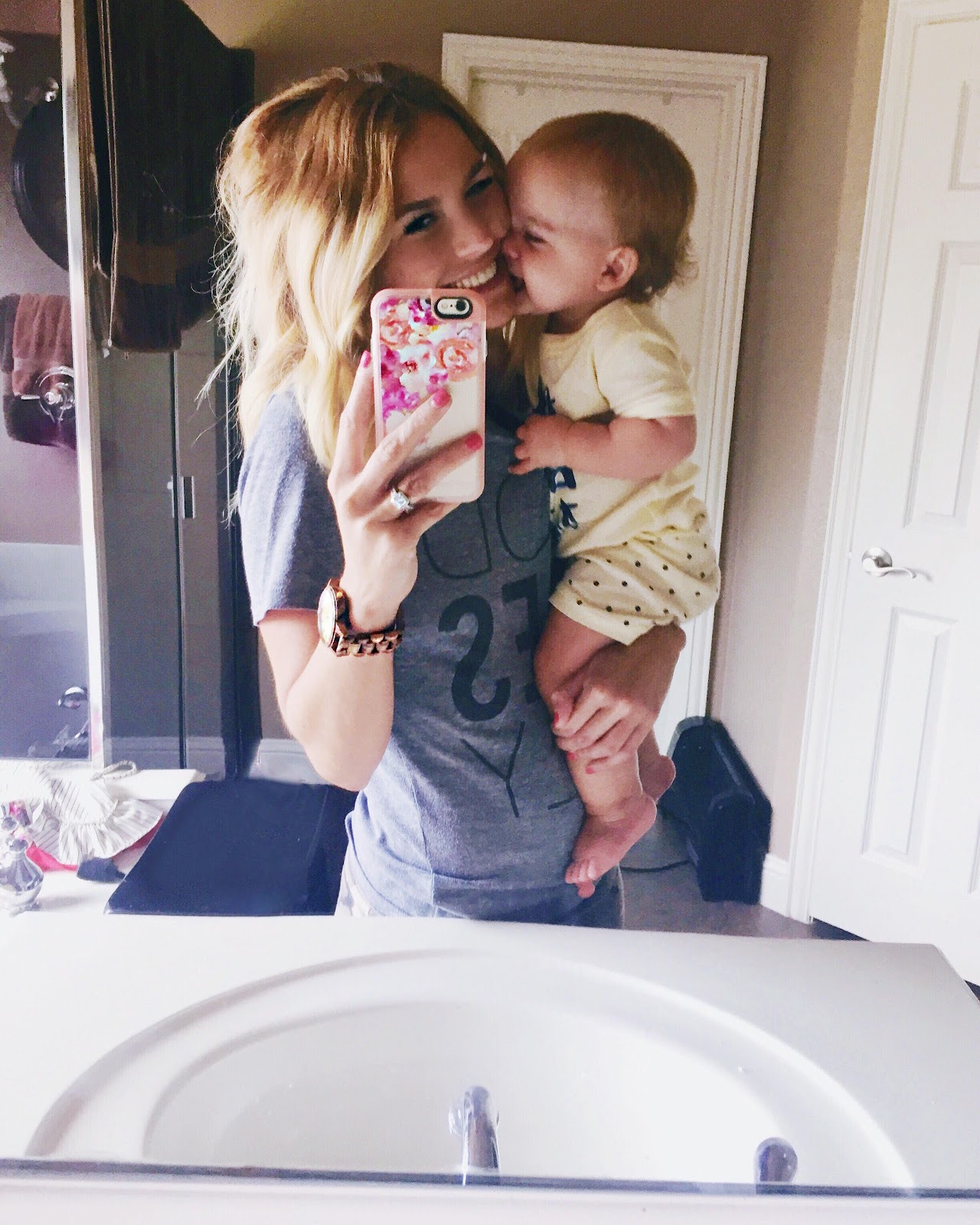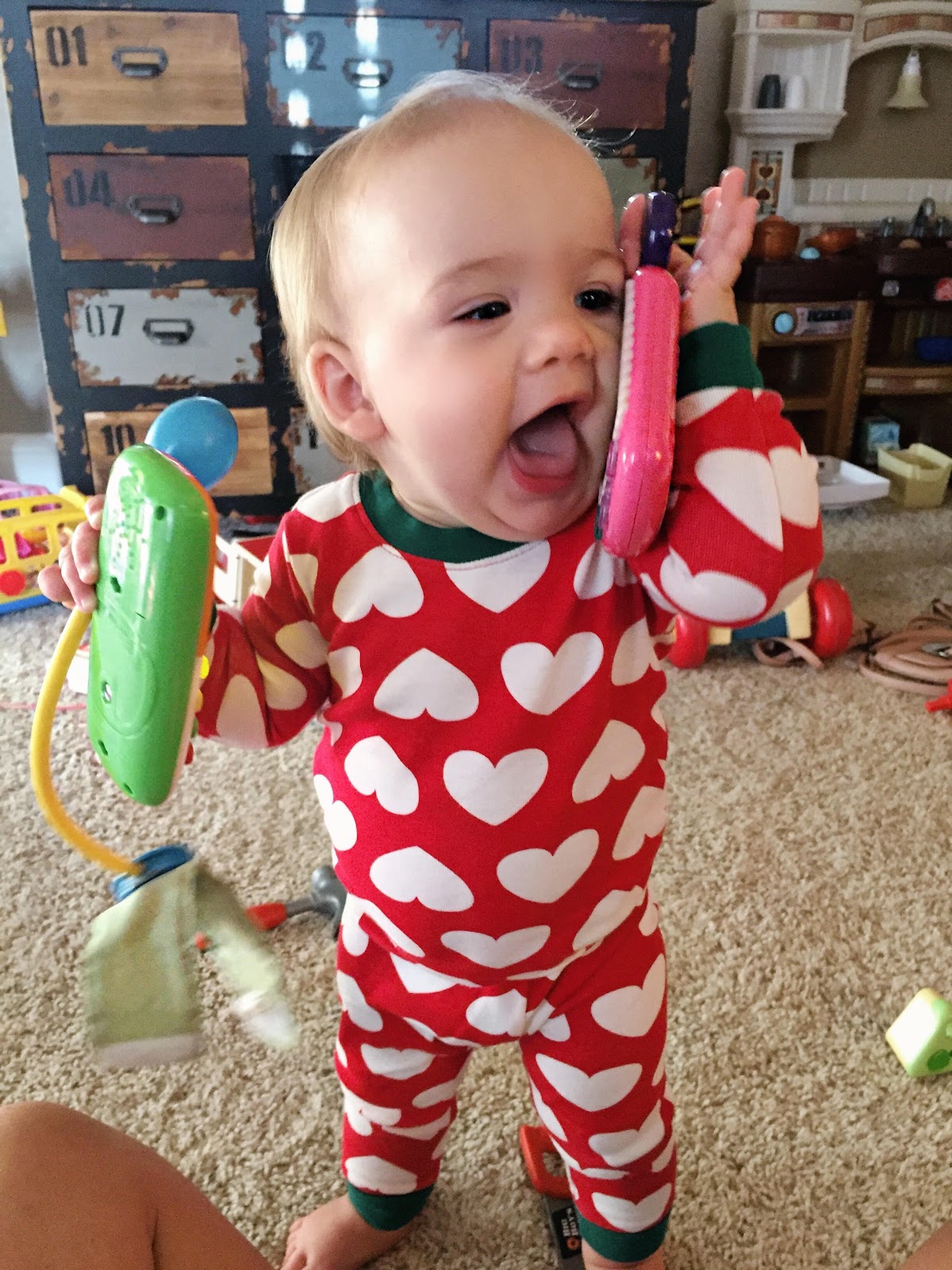 we mentioned that she had some drainage in her eyes and I thought for sure pink eye was taking over my house earlier this week, but alas, she has an ear infection in the corresponding ear to the goopy eye (goopy is such a gross word..). arg! I didn’t even know and she hadn’t even been pulling or fussing about it. so, a round of antibiotics + probiotics for miss Baker. we also checked her hemoglobin and she’s borderline anemic (Jolie was as well at one year), so we are starting her on vitamins, too. other than that.. she’s happy and healthy!