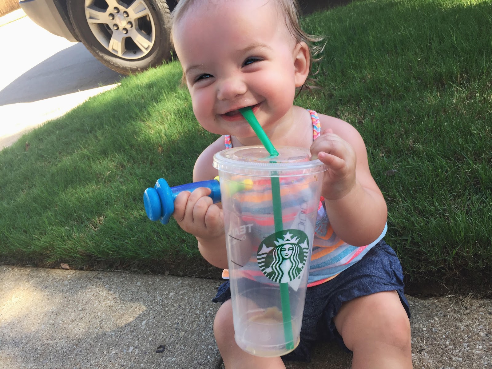 along with the handful of words she puts on repeat, she is communicating much more this month. understanding that nodding her head yes or no will get our attention to know what exactly she wants/needs. she also really lets you know when she is hungry or thirsty. we have these water bottles for the big girls, and after seeing the twins with these she refuses the hundreds of traditional sippy cups I have offered her! sass pants. so we have one that is 16 ounces for water and one that is about 14 ounces for her milk.