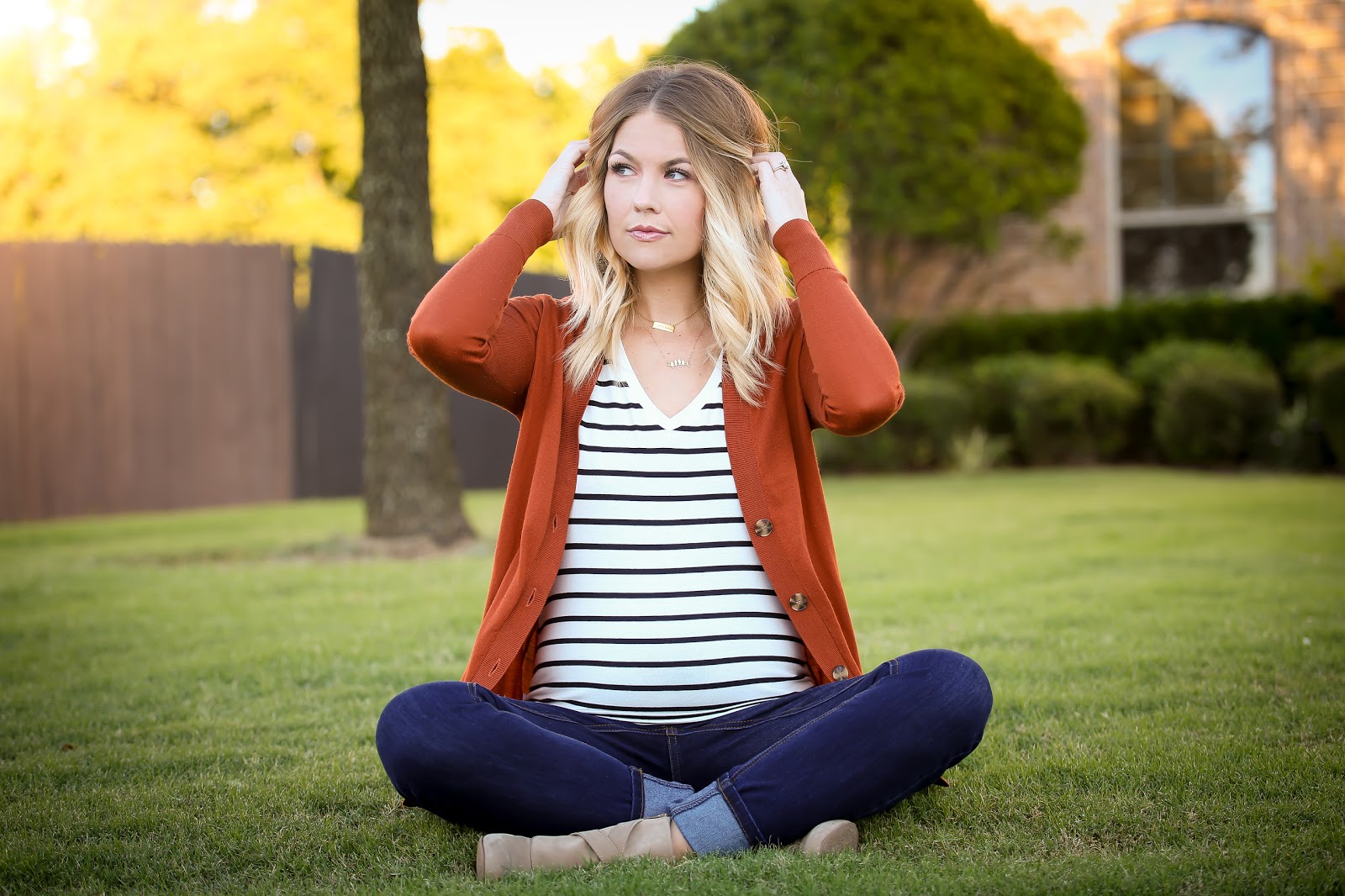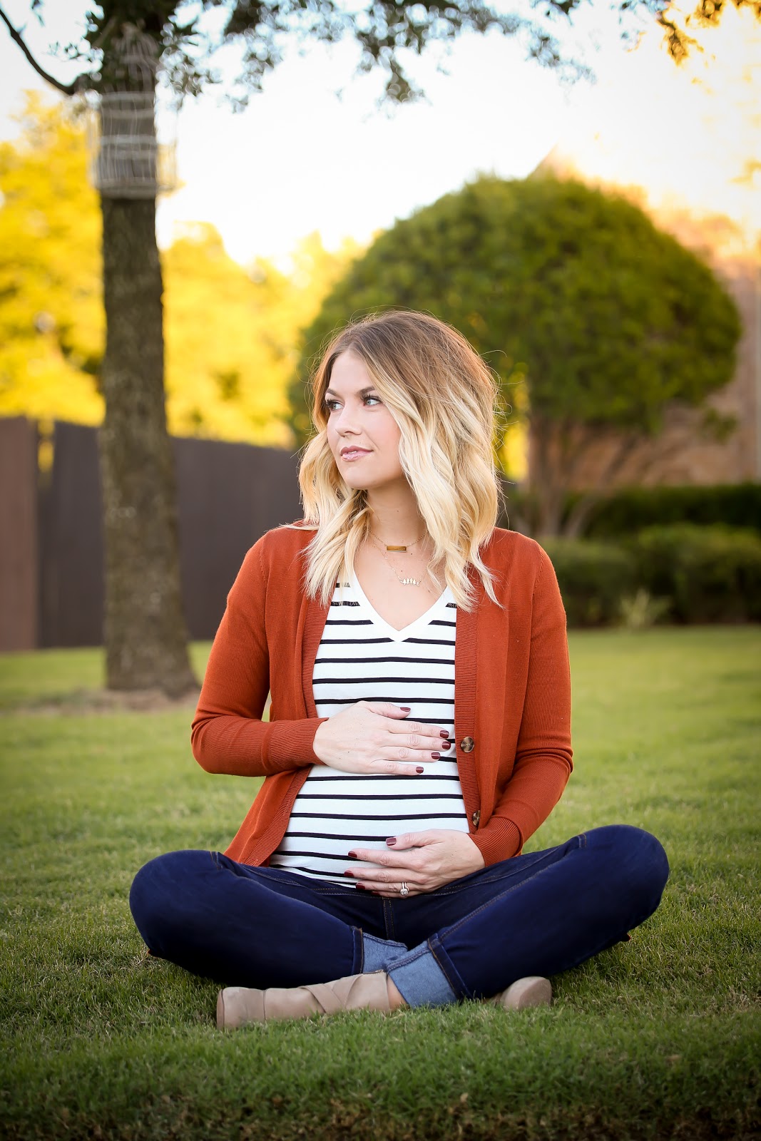 I’m in full maternity wear- my belly is measuring almost 2 weeks larger than I actually should be.. I was at my regular OB check up at a little more than 14.5 weeks and my belly was measuring over 16 weeks.  my doctor giggled a little, but after the giant belly I held with Baker, she’s not super surprised, and neither am I.  ever heard of muscle memory? I feel like my uterus can relate.  of course my belly is huge in the evening- and in the morning I would say its probably normal size for almost 16 weeks (I’ll be 16 weeks on Sunday), but I am not complaining.  I’ve found easy ways to stay comfortable this time around- with a 14 month old + two 3 year olds I need to be able to bend to scrape pop tart or dried mac and cheese off the kitchen floor (this is why we have a dog!!) and get down to their level and move around relatively easy with my growing bump.  I have these exact jeans by jessica simpson in the under the belly option and wore them out during my other pregnancies- these jeans  from motherhood maternity are the over the belly version and I love them just as much!  no to mention they are butter soft and not super heavy in weight so wearing them while the weather is changing here in Texas has been awesome.