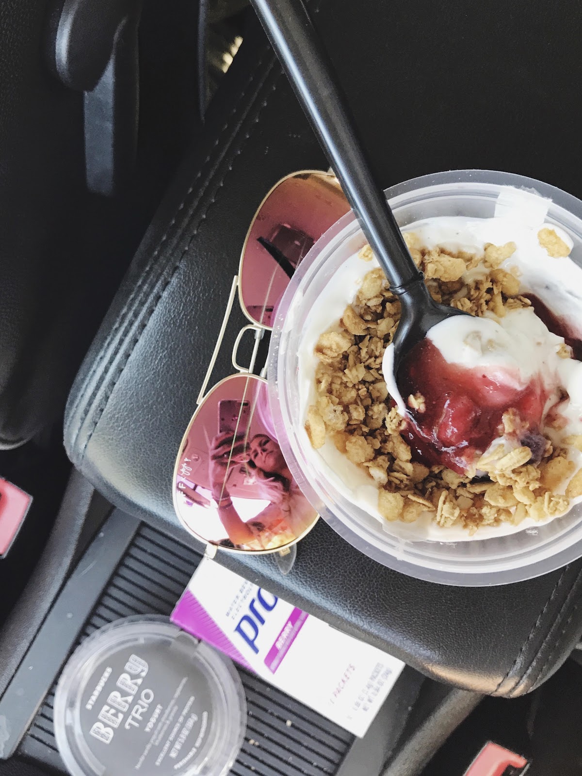 what should really be pictured here is the butterfinger + peanut butter custard thing I was seduced into eating by the picture on the board at Sonic, but on Sunday I made a better decision with a yogurt from Starbucks.