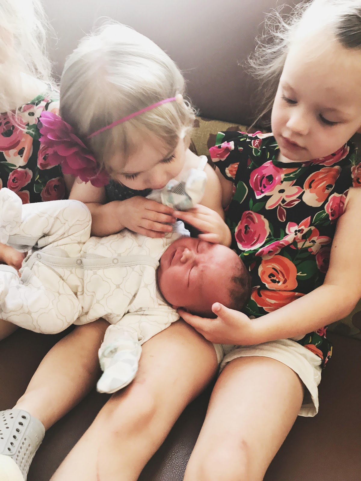 I can’t believe Carter is here!! one of my best friends, Ashley, also known as Auntie to my kiddos (and the blog), had her second baby boy this week! I made my way up to the hospital on Tuesday just a couple hours after Carter was born to get in some baby snuggles and to hug her neck. I always get so emotional about stuff like this! the next day we brought the girls up to meet the newest little guy. they loved him just as they love Brady! Baker is so baby obsessed- she claims, Carter as her own! sorry Auntie, but this girl is convinced that she needs this baby more than you do.