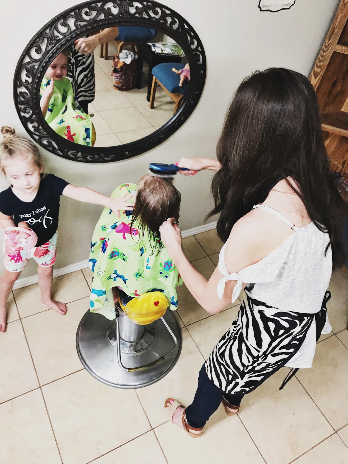 mama went blonde for summer.. even with a bit of silver mixed in! my oldest and dearest friend, Angela has been doing my hair since I was 14 years old after I went to Florida with some family friends and poured about four bottles of sun-in on my hair- anyone remember sun-in?? not to mention she did up-do’s for four proms, three homecomings, a couple firefighter balls.. my wedding + all my bridesmaids. and now she been giving my baby’s their first cut. Baker got the last of her baby hair trimmed out this week.