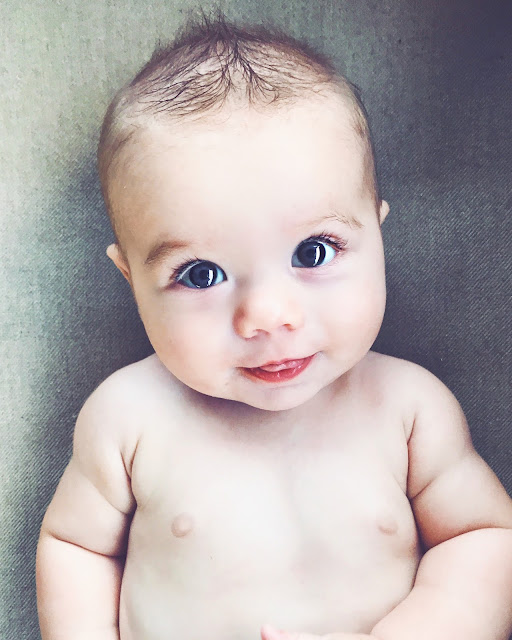 we still gush over about everything you do.. the girls love to make you smile and laugh and when you talk to Baker she just gets so excited.  your little boy personality is really shining through these days- especially when you have the attention of those sister girls.  like.. limbs flailing around happy.. and if any of us make eye contact and say your name its never without a big ol’ grin!  speaking of grins- you are smiling so much these days!  and when you do, it is adorable: your eyes crinkle, your mouth opens in a huge grin, and then you immediately turn your head to the side and bury it into whatever is near. such a little flirt!  those girls can really get you going with the belly laughs and the screeches and squeals.. they are just too much!  I sit with a constant smile on my face watching you grow and change everyday.. especially when it comes to the love that explodes between you and your sisters. life doesn’t get much better than this.