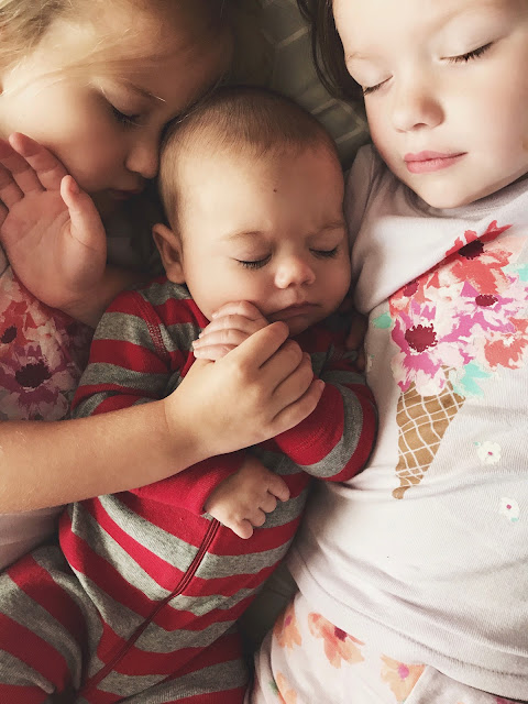 well, we survived the 4 month sleep regression!  I feel like we are finally getting back on a good sleep routine/schedule with Brady.  he still has some rough nights when I can’t seem to get him off the boob, BUT for the most part we are making strides and having some really great sleep!  since adding in cereal to his evening routine, I bumped his bedtime to about 7:30pm. I feed him oats when the girls eat dinner so they are all on the same routine for bedtime.  I mentioned HERE in my typical day in the life that if I’m solo he’s not usually down until closer to 8pm because I like to get the girls in bed first. Brady will usually sleep from 7:30pm until about 3-4am.. he starts stirring and moving around and most of the time one of us has to go in there to comfort him.  if he doesn’t nurse then he’s up by 6:30am to eat and if he does eat then he’s asleep until closer to 7:30-7:45am.